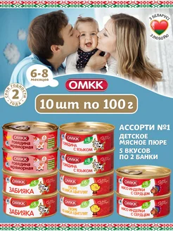 Пюре детское мясное Ассорти 5 вкусов, 10 шт