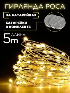 Гирлянда роса на леске 5м. Тёплый жёлтый