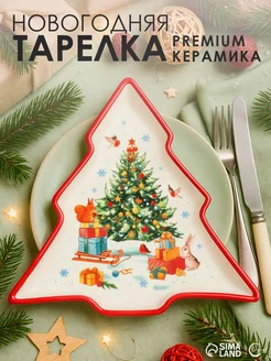 Тарелка новогодняя в форме ёлки, 23х22 см