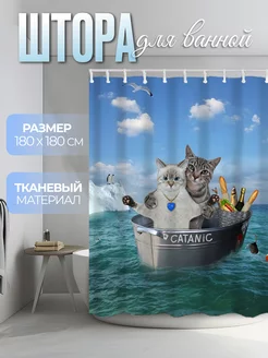 Штора для ванной тканевая 180х180 с ракушками белая морская