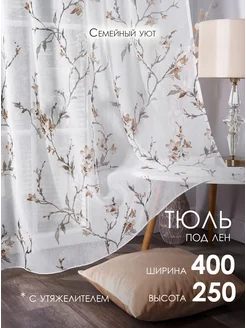 Тюль под лен 400х250 в гостиную и спальню готовая