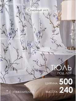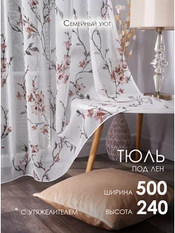 Тюль под лен 500х240 в гостиную и спальню готовая