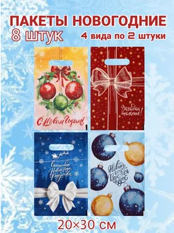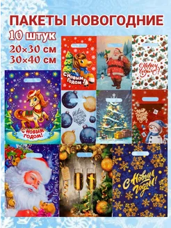 Подарочные пакеты новогодние набор 10 шт разные 20×30, 30×40