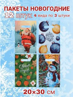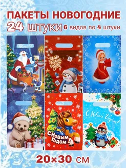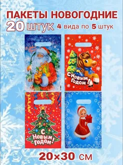 Пакеты новогодние маленькие детские в школу сад 20 шт 20×30