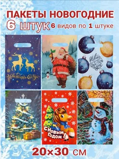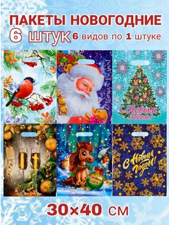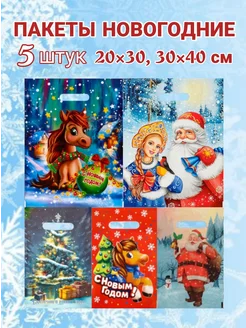 Подарочные пакеты новогодние набор 5 шт разные 20×30, 30×40
