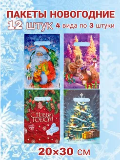 Подарочные пакеты новогодние маленькие 10 штук разные 20×30
