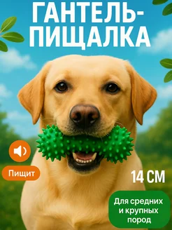 Гантель резиновая с шипами пищалка 14 см