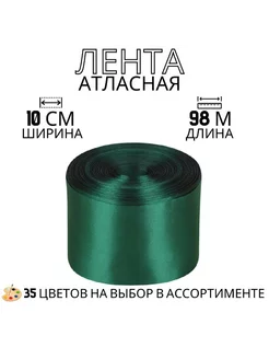 Лента атласная, тёмно-зелёная, ширина 10см, длина 98м