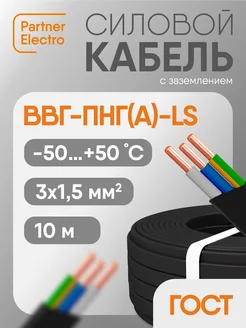 Силовой кабель ВВГ-Пнг(А)-LS 3х1,5 (10м) Партнер-Электpo