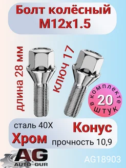 Болт колёсный М12x1.5 конус 20 штук Renault BMW Lada