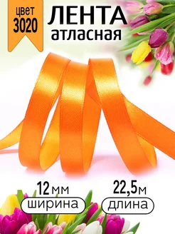 Лента атласная оранжевая 1,2 см уп.22,5 м (±1м) для подарков