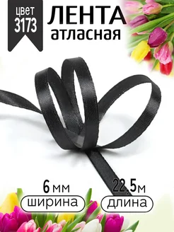 Лента атласная черная 0,6 см уп.22,5 м (±1м) для подарков