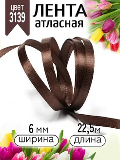 Лента атласная коричневая 0,6 см уп.22,5 м (±1м)