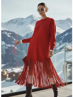 Платье повседневное с бахромой