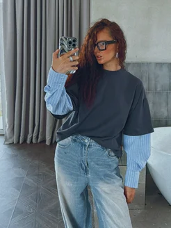 Свитшот комбинированный с имитацией рубашки
