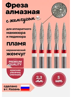 Фреза для маникюра пламя с жемчугом 2,3 красная