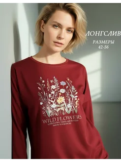 Лонгслив из хлопка однотонный базовый с принтом y2k
