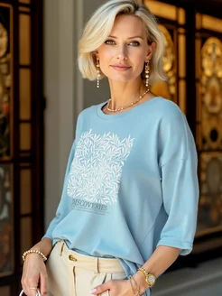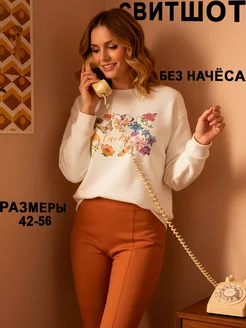 Кофта оверсайз трикотажная с принтом без начёса стильная