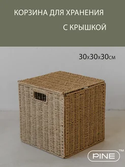 Корзина плетеная для хранения вещей 30*30*30 см. с крышкой
