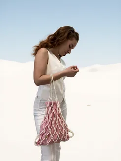 Сумка из бусин авоська белая