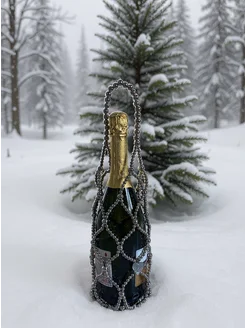 Сумка авоська из бусин для бутылки новогодняя вечерняя