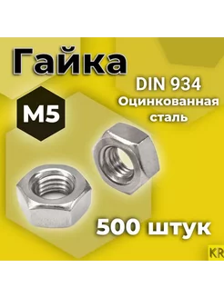 Гайка М5 500 шт Оцинкованная стальная DIN 934