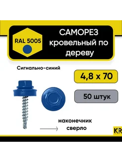 Саморез кровельный 4.8 х 70 мм RAL 5005 по дереву 50 шт