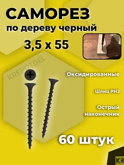 Саморез по дереву, черный, 3,5х55 мм, 60 шт
