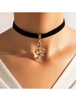 Бархатный чокер с украшением змейка