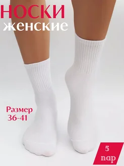 Носки белые высокие набор в рубчик 5 пар