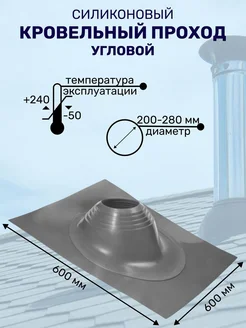 Кровельный проход для дымохода угловой д.200-280