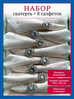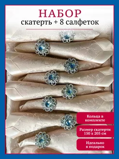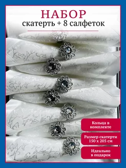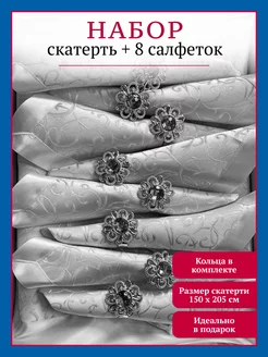 Скатерть тканевая жаккард на стол 150х205 с 8 салфетками