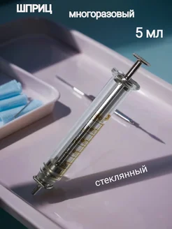 Ветеринарный шприц 5 мл многоразовый поршень стекло
