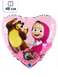 Воздушный шар сердце Маша и Медведь 46 см