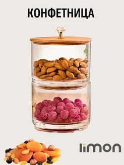 Конфетница с деревянной крышкой двухъярусная ваза Limon