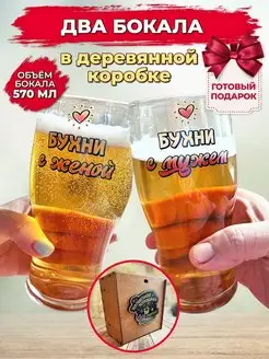 Пивные бокалы бухни с женой с мужем готовый подарок
