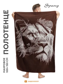 Полотенце банное махровое с рисунком лев 100х150 в подарок