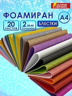 Пористая резина фоамиран глиттерный А4, 2 мм, 20л, 20 цветов