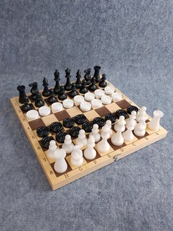 Шахматы и шашки пластиковые с деревянной доской 29х29см