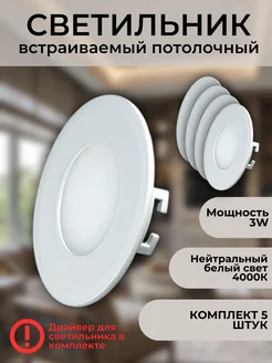 Светильник потолочный светодиодный 3Вт 4000К комплект 5шт