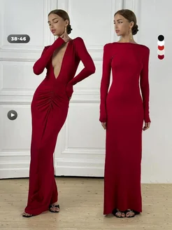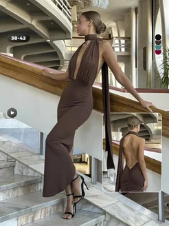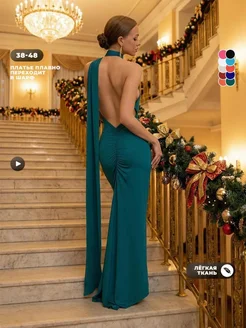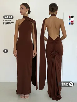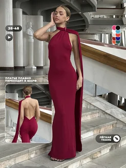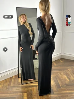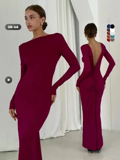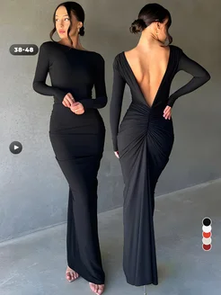 Платье вечернее с открытой спиной и драпировкой на ягодицах