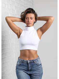 Топ женский летний кроп под пиджак вечерний с горлом