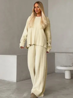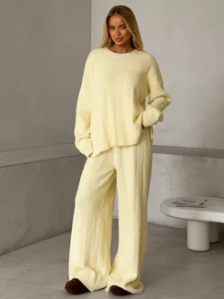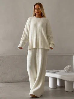 Костюм теплый пушистый вязаный трикотажный с брюками