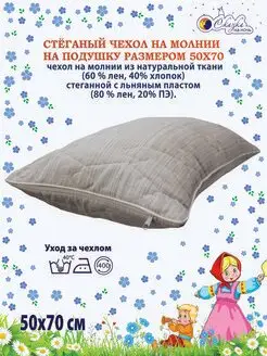 Чехол на подушку стеганный льняной 50х70 на молнии