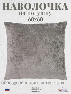 Наволочка декоративная 60х60 см Бархатный велюр серый