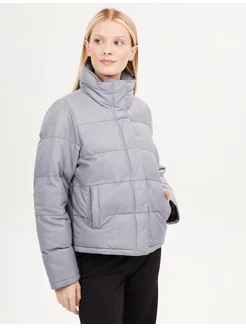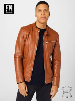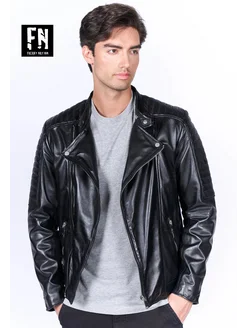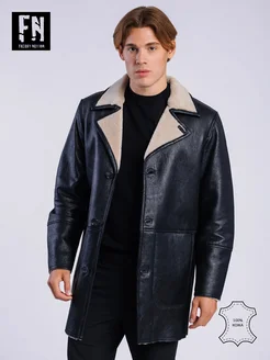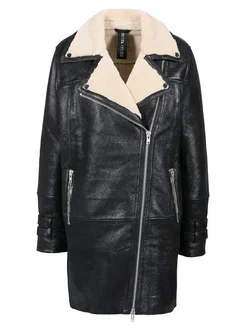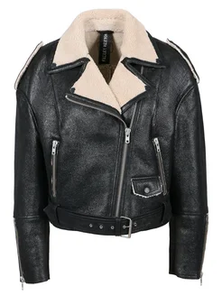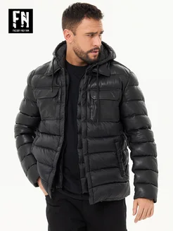 Пуховик кожаный комбинированный зимний с капюшоном Check