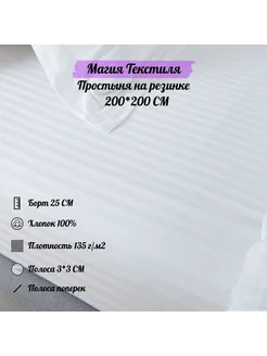 Простынь натяжная 200х20х25 страйп сатин полоса 3х3см