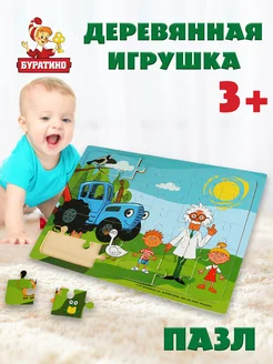 Деревянные пазлы для детей 3 лет Синий Трактор