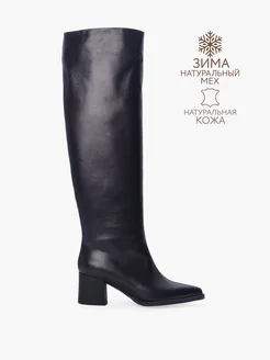 Сапоги женские зимние на каблуке натуральная кожа высокие