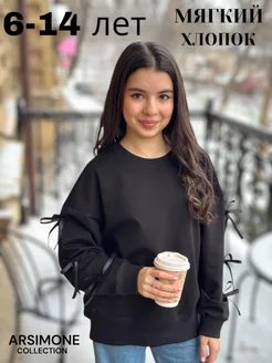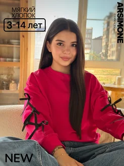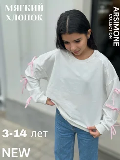 Лонгслив оверсайз для девочки в школу y2k с бантиками